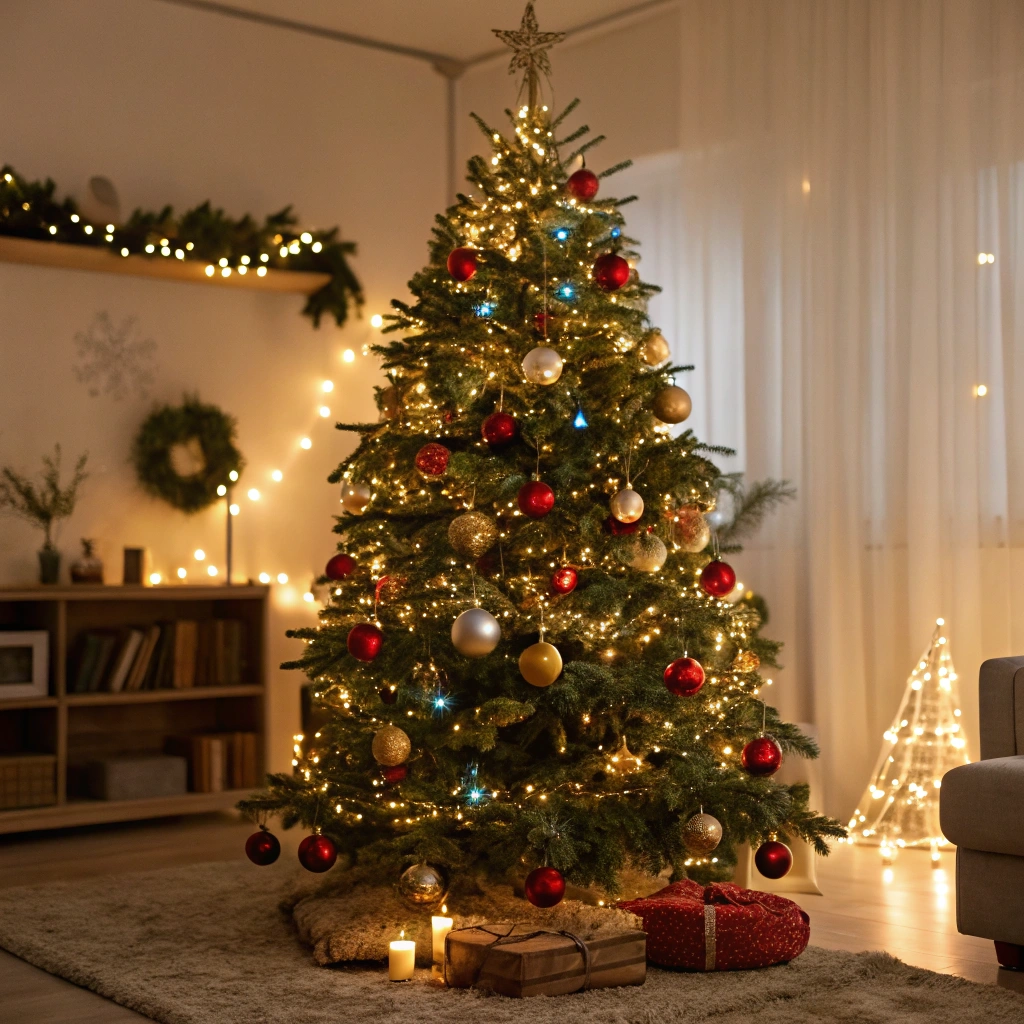 A beautifully decorated Christmas tree with twinkling lights and ornaments