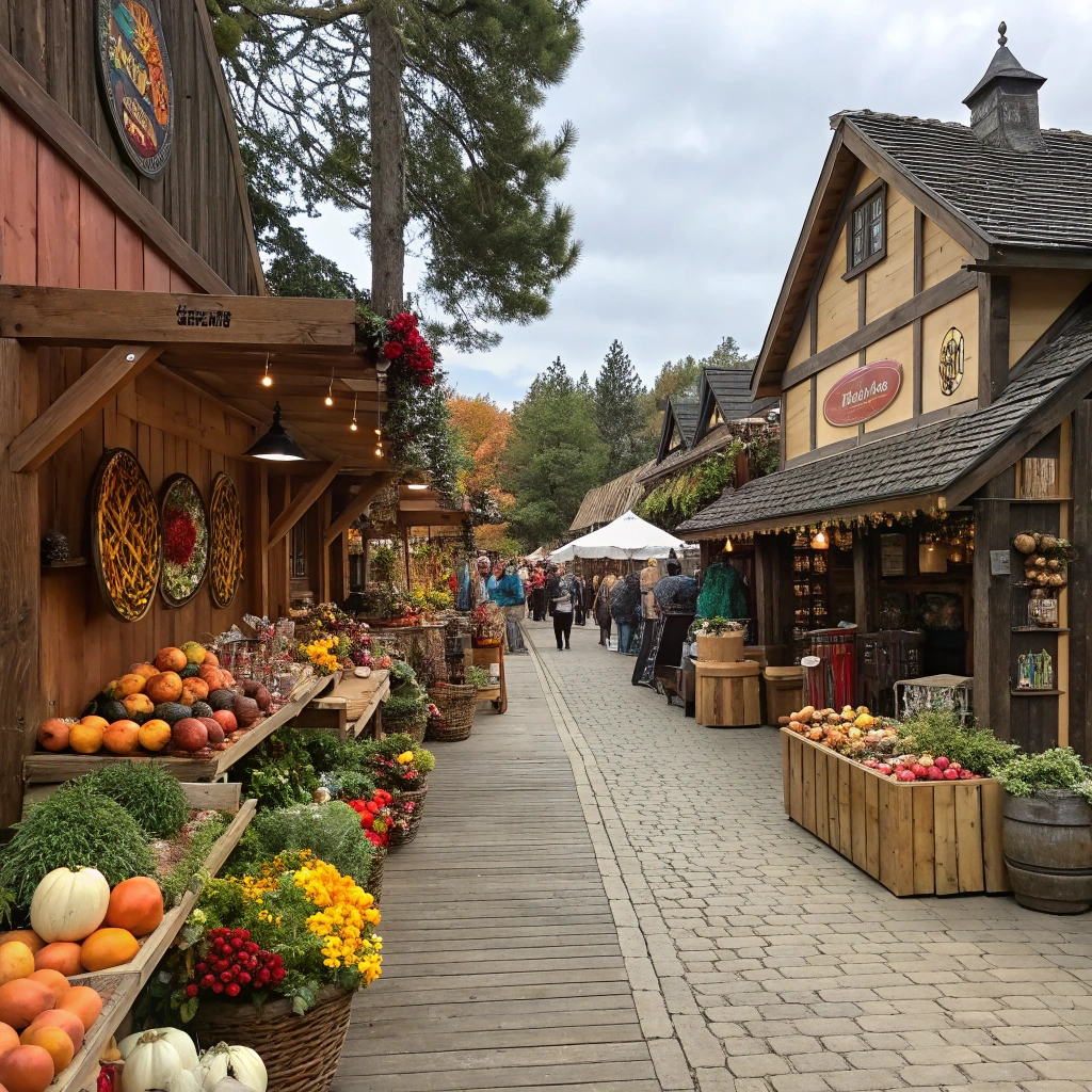 A charming, rustic market filled with seasonal produce and handmade crafts.