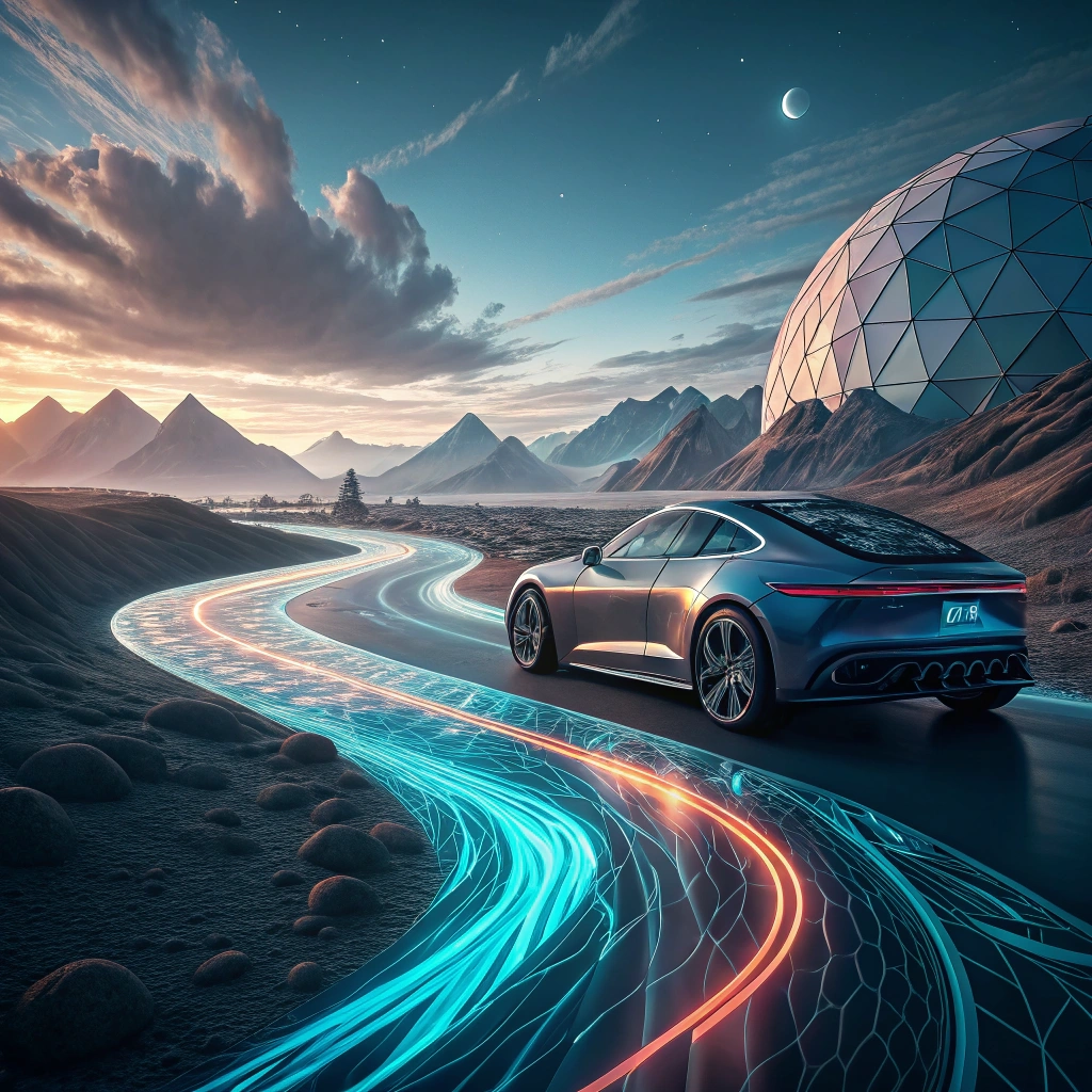 A digital landscape of flowing lines and shapes, showcasing futuristic concepts.