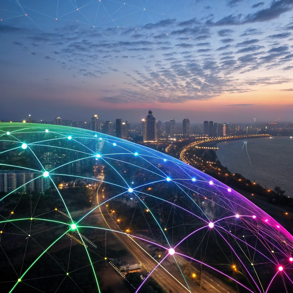 An abstract representation of digital connectivity with vibrant colors and intricate patterns.