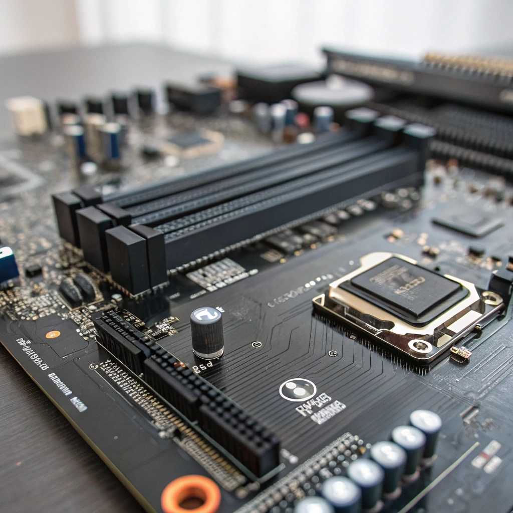An intricate close-up of a motherboard, highlighting the complexity of modern computing and technology