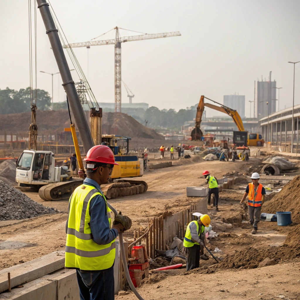 - A behind-the-scenes look at the construction site, with workers and machinery transforming the landscape.