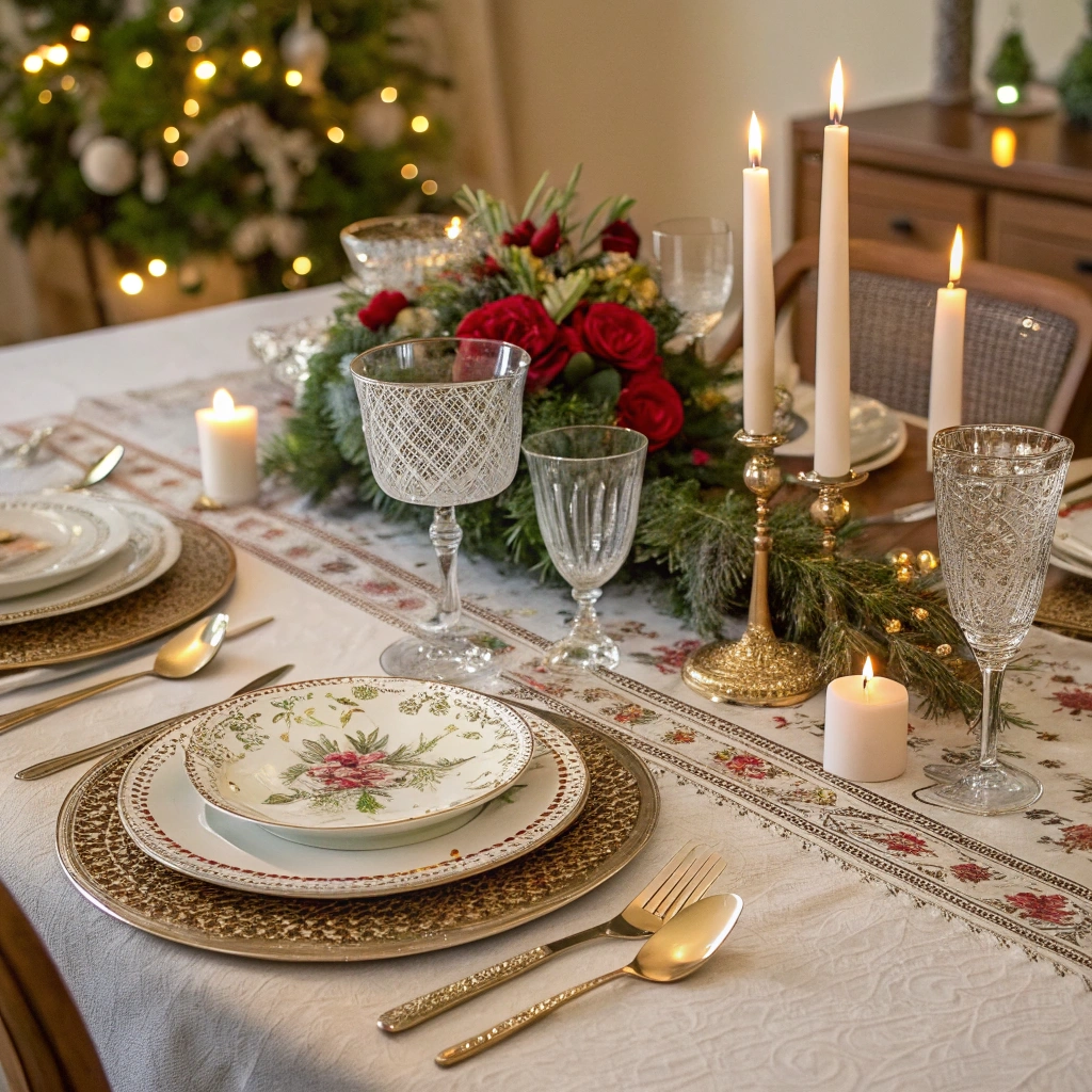 A beautifully decorated festive table ready for a holiday feast.