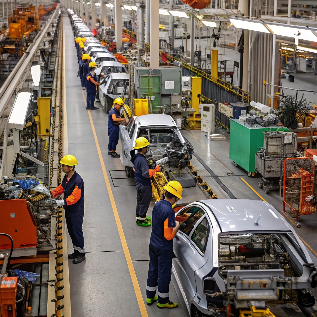 A busy assembly line in a manufacturing plant, depicting the intricate processes of industry in action