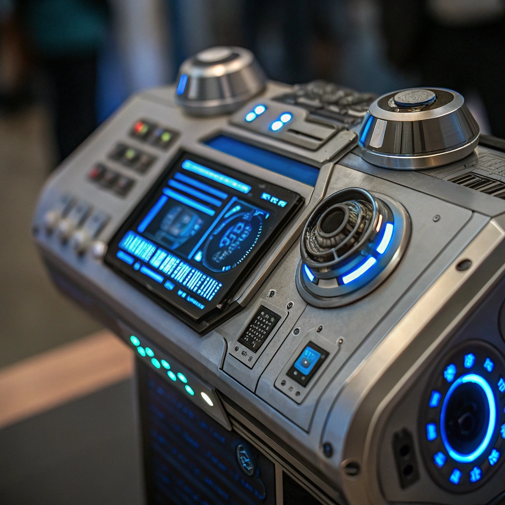 A close-up of a futuristic gadget, spotlighting its intricate design and advanced features.