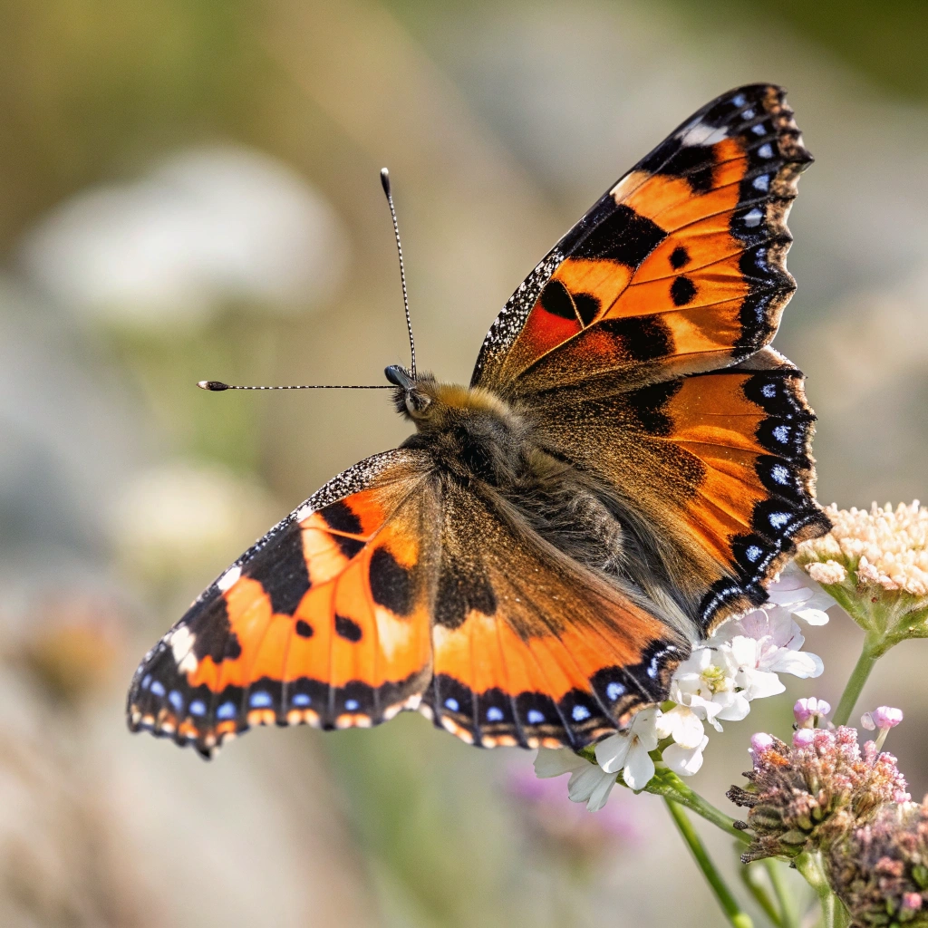 A close-up shot of a butterfly resting on a flower, showcasing its colorful wings.