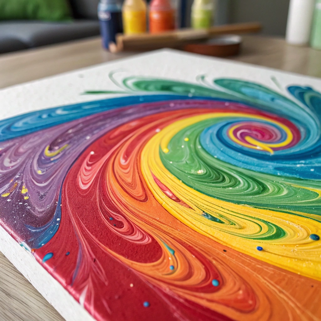 A colorful swirl of paint on a canvas, showcasing vibrant hues blending together.