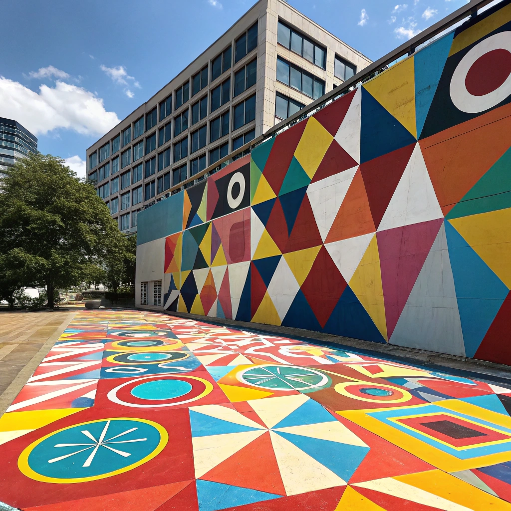 A mesmerizing abstract piece with geometric shapes in a vivid color palette.