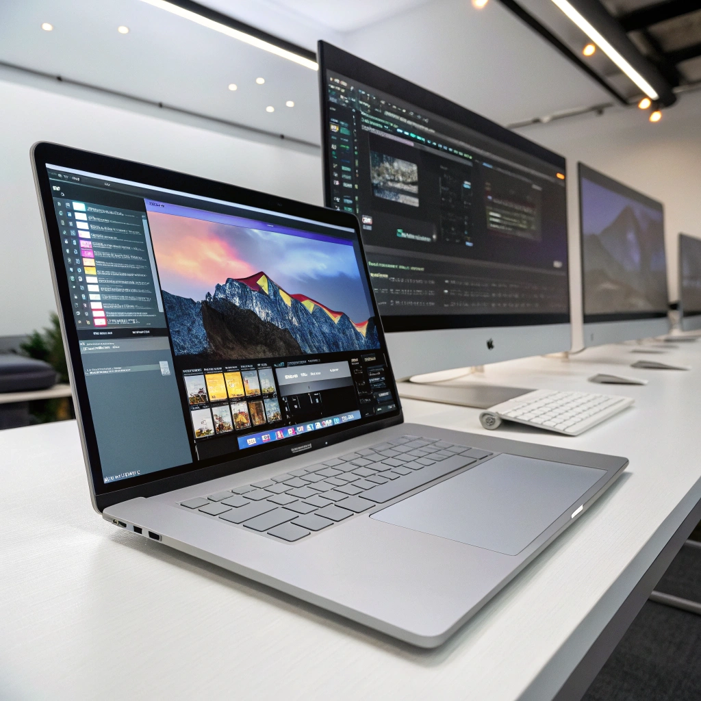 A sleek computer setup with an ultra-modern design, highlighting advanced software applications.
