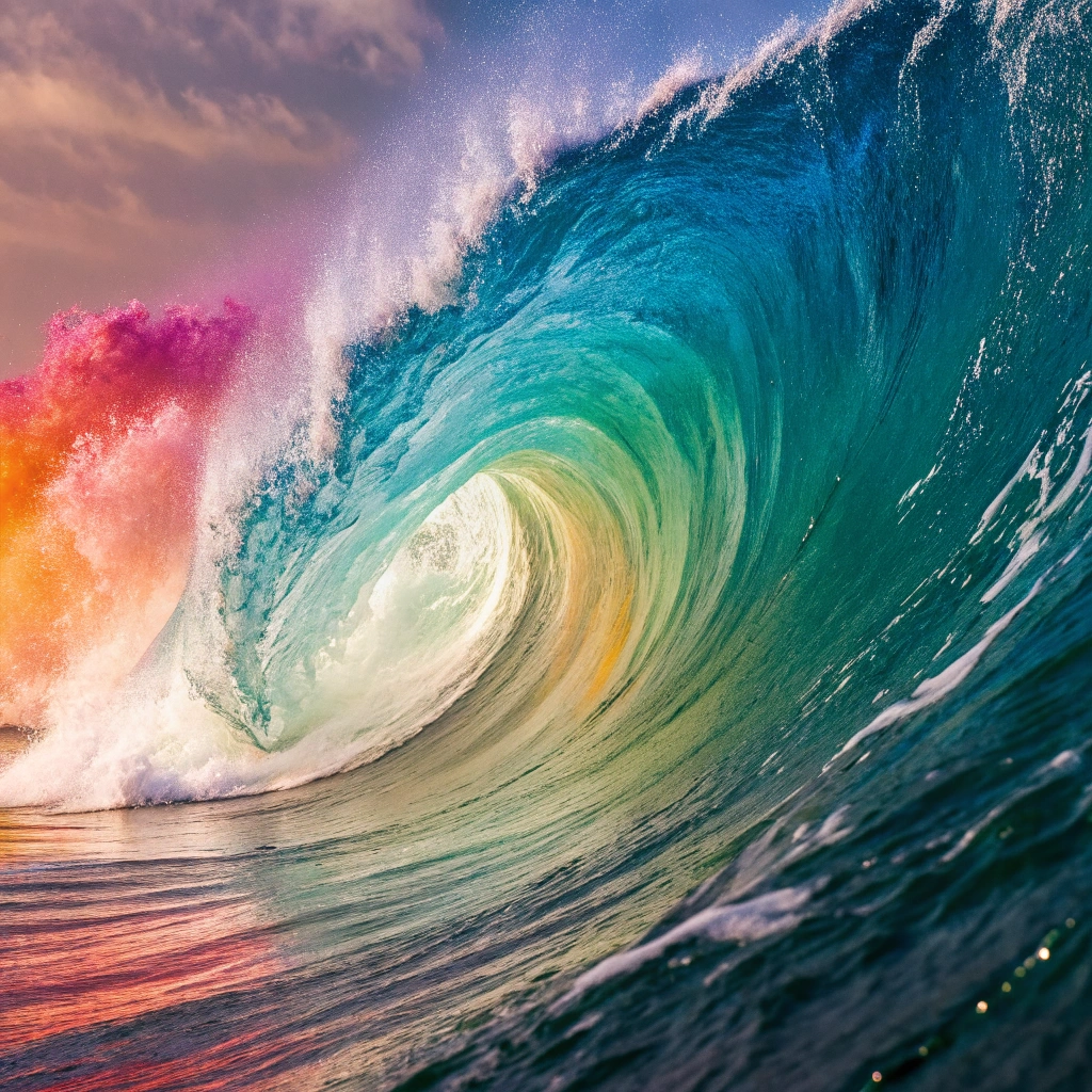 A swirling pattern of bright colors blending together, evoking a sense of movement and energy.