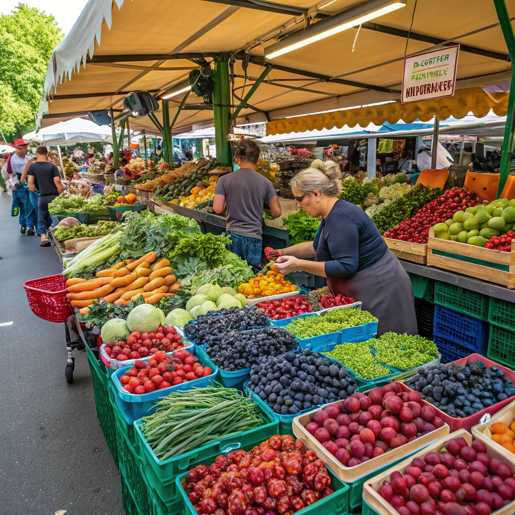 A vibrant farmers market scene capturing the freshness and variety of produce