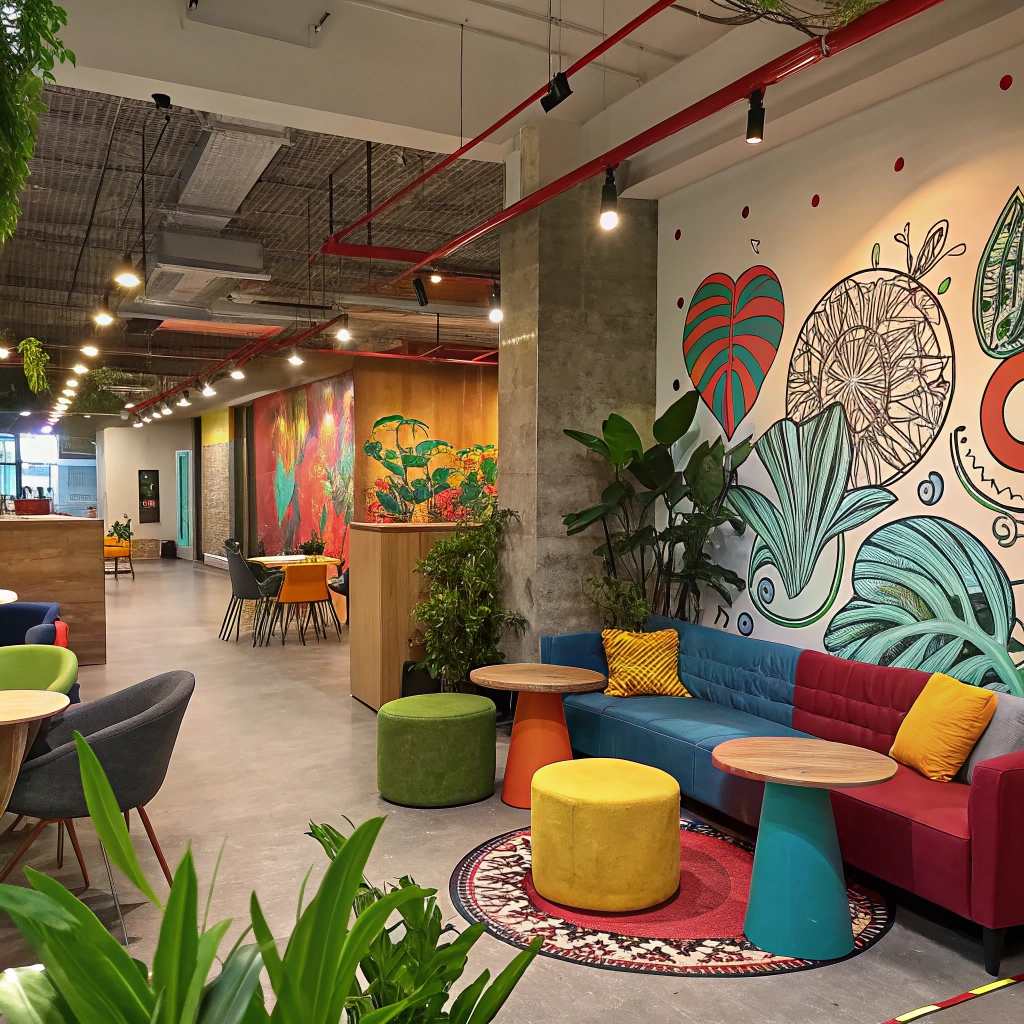 An innovative coworking space filled with creative decor.